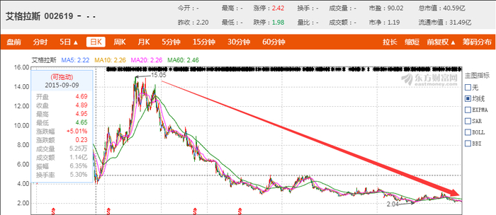 截至11月30日收盘,艾格拉斯报收2.20元/股,最新市值仅40.59亿元。值得一提的是,借壳近巨龙管业上市5年来,股价(复权前)从2016年9月的15.5元/股一路暴跌至今年5月底的最低点2.04元/股,暴跌近90%。