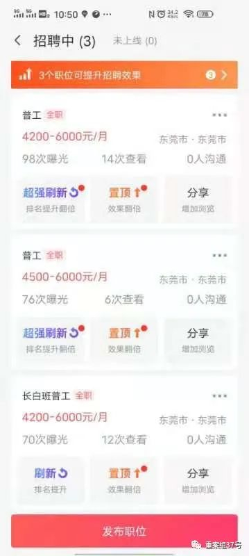 吴林提到,他们购买企业招聘账户后,还要花钱请人在招聘平台上代发招聘帖,“发招聘贴特别严格,发不好就封账号,发帖后,怎么能在平台上排到最前面,也是需要重点考虑的。”