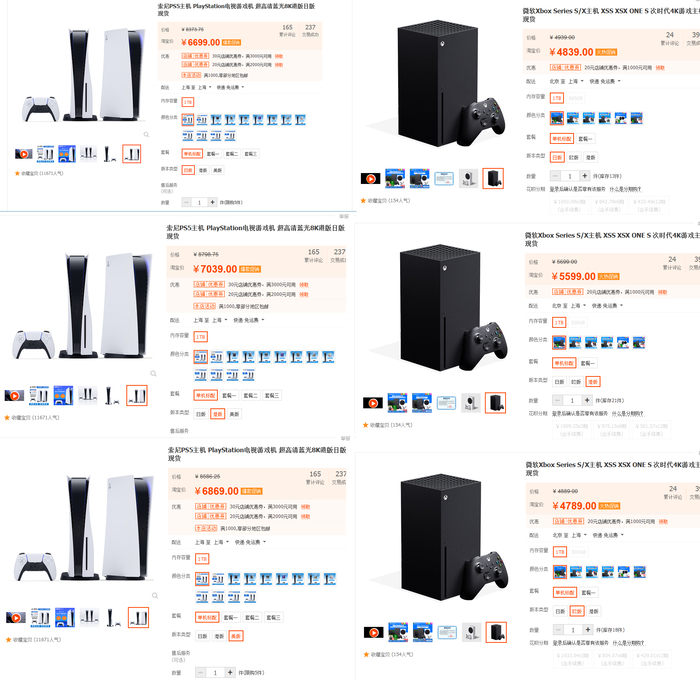 两款主机在某电商的价格对比
