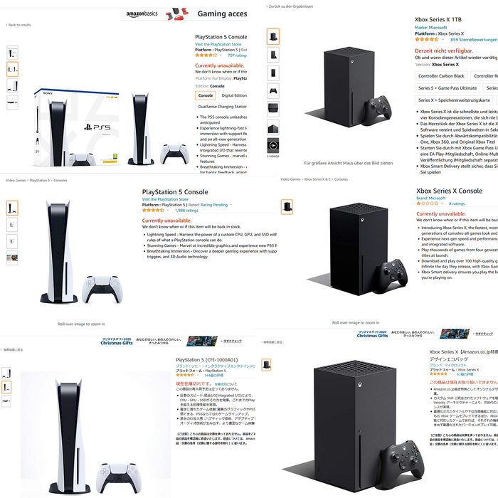 如果自己有能力的话,可以选择在亚马逊等海外电商购买,笔者特意查询了日本、美国和英国的亚马逊电商,两款主机目前均处于缺货状态。