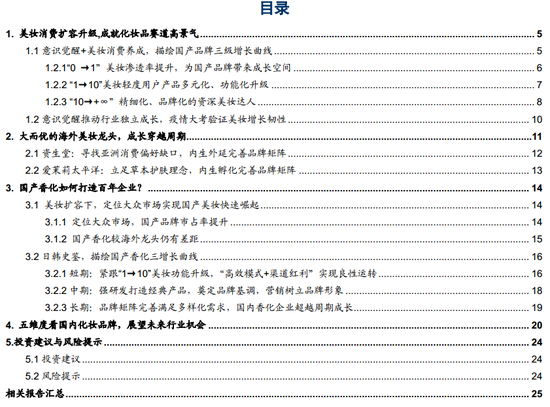 风险提示:消费需求更迭加速,国产美妆企业成长不及预期,外资美妆企业降维打击。