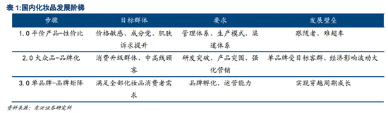 在实现第二阶段突破之前,香化企业产品升级势在必行,从而延伸渗透率、渠道下沉带来的第一阶段红利曲线。我们认为,内资品牌有望通过打造高端品牌“国产替代”产品实现由低价到高性价比的产品转型,借助功效化的“国产替代”实现弯道超车,树立产品质量信心、赢得消费者信赖。