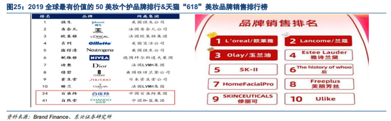 ·品牌影响力弱。国产品牌缺乏标签化的经典产品、美妆需求与品牌绑定度低,从而导致品牌辨识度和消费者粘性低。英国品牌评估机Brand Finance发布“2019全球最有价值的50个化妆品和个人护理品牌”排行榜中,国产品牌进入榜单数量少且排名靠后。