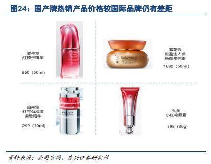 ·缺乏长青经典产品。国产品牌热销产品目前主要为当季爆款产品为主,生命周期往往随市场热点更迭而进入产品生命周期尾声。主要由于内资企业研发、专利上仍处于劣势,产品可替代性强。而国际品牌凭借深厚的研发实力不断升级经典产品,形成经典产品,从而增强用户粘性。资生堂“红水”历经百年流传四次升级,成为日本国民美妆产品;雅诗兰黛小棕瓶历经七代更替,位居全球精华类产品前列。