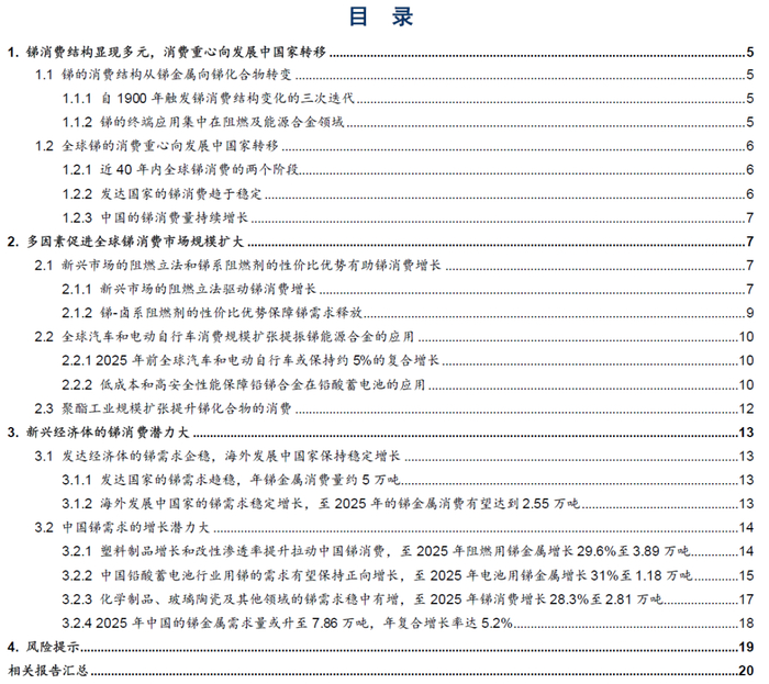 3.2.1 塑料制品增长和改性渗透率提升拉动中国锑消费,至2025年阻燃用锑金属增长29.6%至3.89万吨
