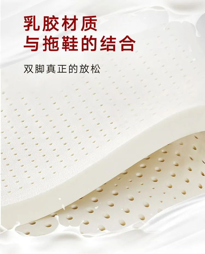乳胶枕的手感大家都知道吧,这双拖鞋的脚感完全是踩在乳胶枕上一般,即时放松酸胀、肿痛的双脚。