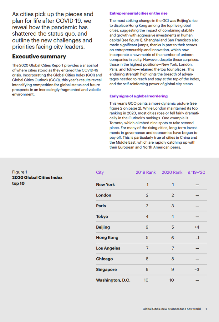2020年《全球城市潜力排名》—— 全球秩序重建信号初显