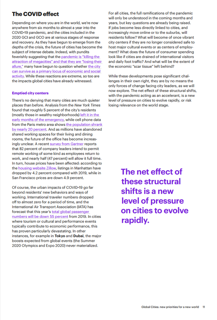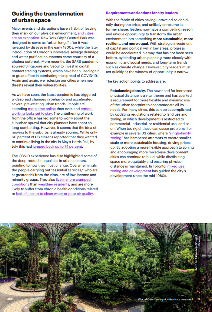 新冠疫情是一个决定性的转折点,这次疫情加剧了一些原本已经给城市带来巨大压力的问题,包括财政压力、贫富差距,逆全球化和环境危机。应对这些挑战,城市领导者需要重新思考许多长期以来存在的假设和发展重点。