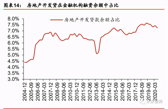 截至 2020 年 6 月,房地产开发贷余额达 11.97 万亿元,过去 15 年年复合增速达 19.3%, 较金融机构各项贷款余额的年复合增速高 3.7pct,开发贷余额占比也从 2004 年的 4.4%提 升至 2020 年中的 7.2%。近年在 MPA 考核框架下,监管部门对银行涉房贷款比例普遍要 求下降至一定比例,所以从边际来看,同比增速自 2018 年中以来持续收敛。2020 年 6 月,开发贷余额同比增速自 2018 年的 24.2%降至 8.4%。
