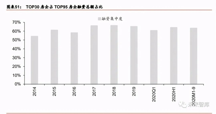 弯道超车难度的提升也意味着行业集中度将趋于提升。过去由于融资总量管理,并没有精 细化到公司,这也导致其实没有本质上影响到 TOP50 房企的加杠杆能力,而新机制之下 将使得中小房企拿地难度提升,头部房企的集中度提升速度进一步提升,尤其权益口径下 行业集中度提升空间更显著。