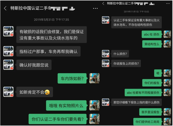 2019年5月31日及2019年11月1日,特斯拉二手车销售均强调认证二手车保证没有重大事故 受访者供图