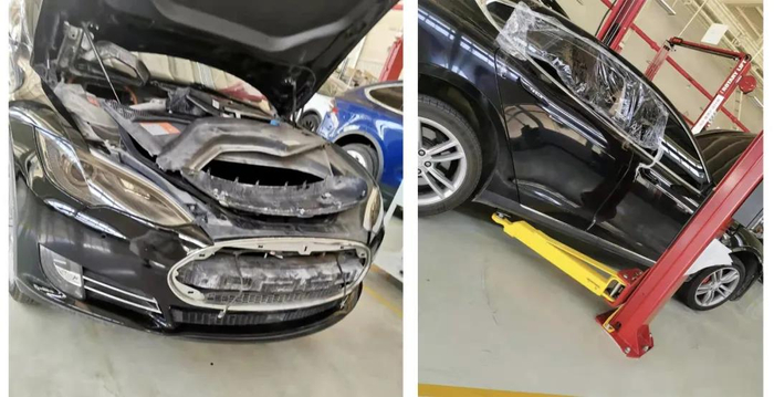 8月27日,天津旺港特斯拉中心,被拆卸的Model S 受访者供图 这样的一台车,我不敢继续开了。