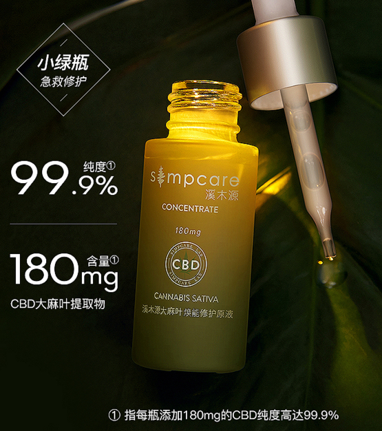 目前市面上可以查到的大麻化妆品多使用大麻叶提取物或大麻籽油,不过部分产品以“CBD”为卖点,产品名称或产品包装上含有“CBD”字样,如溪木源这款产品。