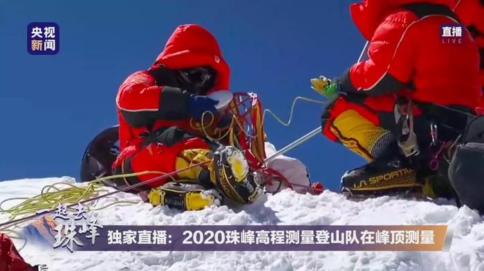 “测量登山队员在峰顶竖立起测量觇标,使用GNSS接收机通过北斗卫星进行高精度定位测量,使用雪深雷达探测仪探测峰顶雪深,并使用重力仪进行了重力测量。”