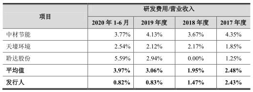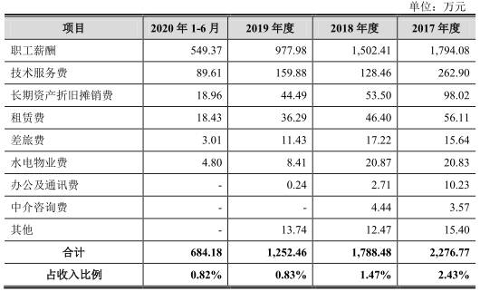 公司研发费用率低于可比公司平均水平,2017年至2020年1-6月,可比公司平均研发费用率分别为2.48%、1.95%、3.06%、3.97%。