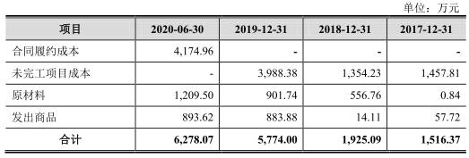 2016年至2020年6月30日,南网能源存货金额分别为203.52万元、1516.37万元、1925.09万元、5774.00万元和6278.07万元,存货账面价值占流动资产的比例分别为0.24%、1.42%、1.38%、2.81%和2.95%。