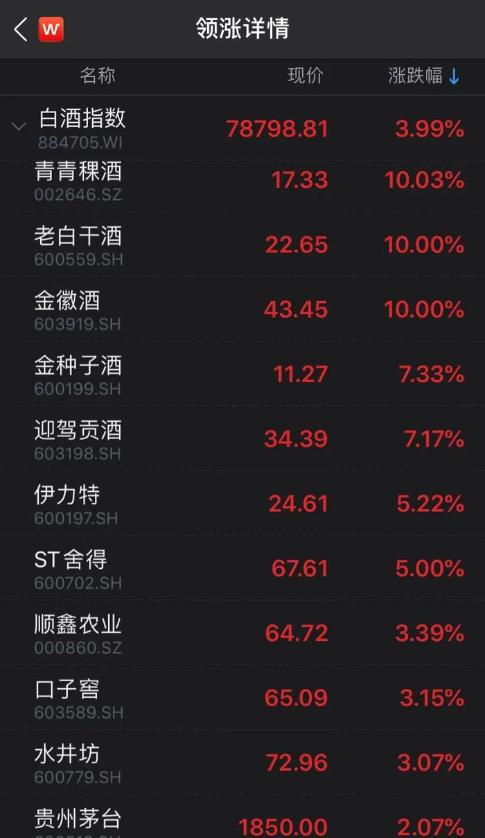 与此同时,周二老白干酒、金徽酒和青青稞酒纷纷涨停,其中老白干酒收报22.65元,同样创出上市以来新高。