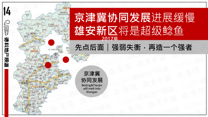 进展缓慢,这中间有一个很重要的原因:北京实在是太强大了。协同发展是我跟你差不多强大,协同起来毕竟容易;但京津冀就有北京超级强大,就很难协同了。