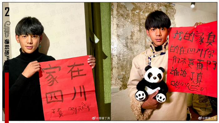 先从丁真这张很红的照片说起,他写了张毛笔字:家在四川。很多人因为丁真是藏民就以为他家在西藏,其实他家在四川。
