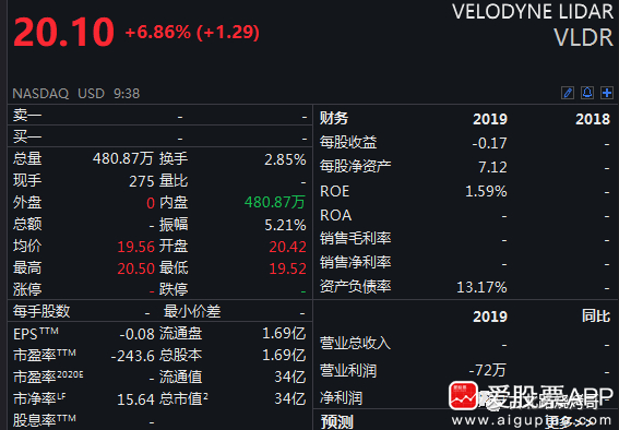 激光雷达的老大,今年7月份借壳上市,目前市值34亿美金。