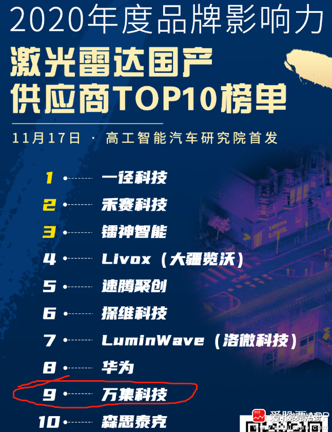 看上面那张图,公司是本次榜单前十名企业中,唯一一家上市公司。该公司曾在今年6月宣布拟定增募资不超过9亿元,用于自动驾驶汽车用低成本、小型化激光雷达研发及量产。
