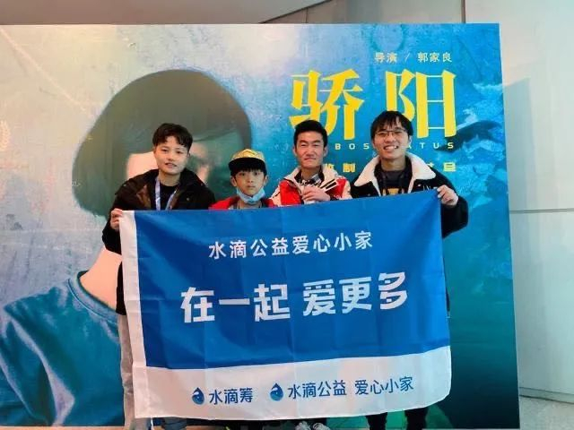 主演岳承轩(左二)与水滴公益爱心小家在首映礼留念