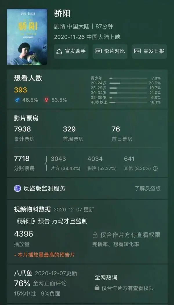 《骄阳》目前票房不足8000元