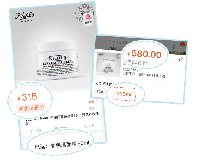 T猫科颜氏官方旗舰店,50ml的小罐都要315元,125ml的580元,虽然知道不会踩雷,但心头肉还是微微滴疼……