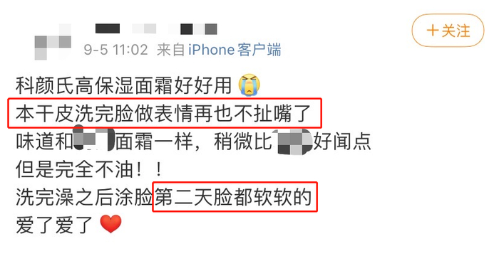 科颜氏家的高保湿面霜,真的是用过都会爱上。除了小红书上满屏的推荐,微博搜一搜也是清一色的好评👇