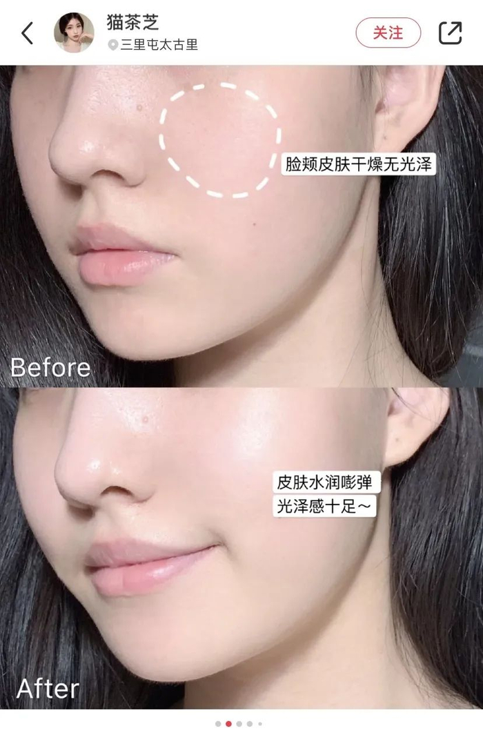 原本干燥无光泽的脸颊,涂抹高保湿面霜后,瞬间水润嘭弹,细腻有光泽~👇