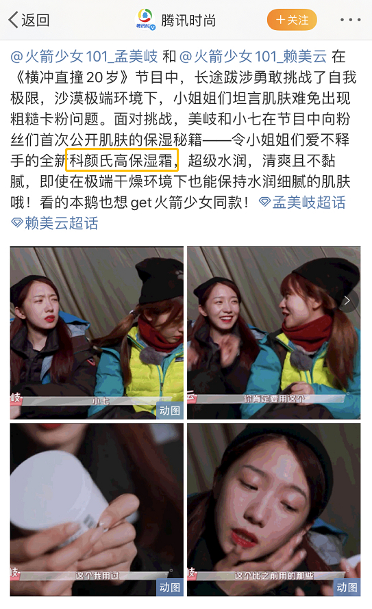 山支大哥和小七在沙漠极端环境下录节目时透露,她们是用科颜氏高保湿面霜来保持肌肤水润细腻的。👇