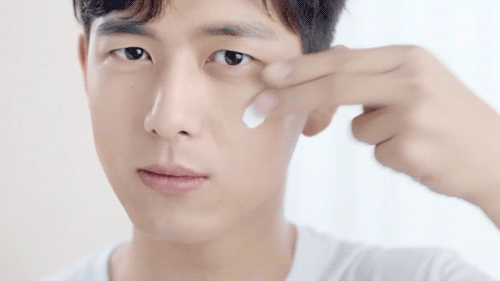 然后取用精华,涂抹在T区和两颊位置,自下而上、由内而外轻轻按摩,帮助肌肤吸收。