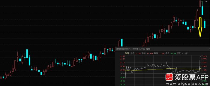 典型的例子就是德力股份最后一天大涨是尾盘拉高,而整体涨幅巨大,后面就开始出货了。