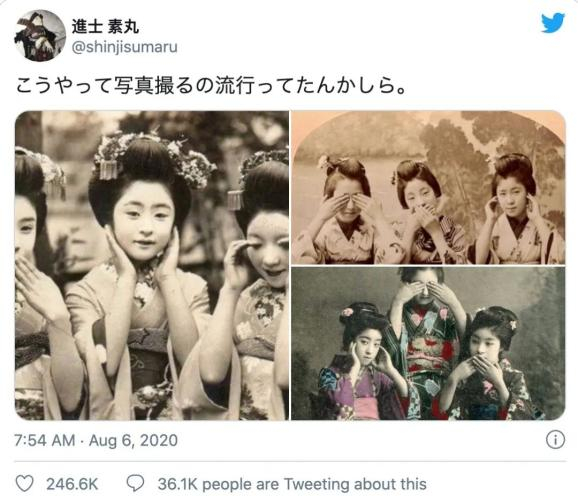 最近就有人扒出了日本上个世纪的艺伎写真,令人惊讶的是,她们全部摆出了一模一样的姿势: