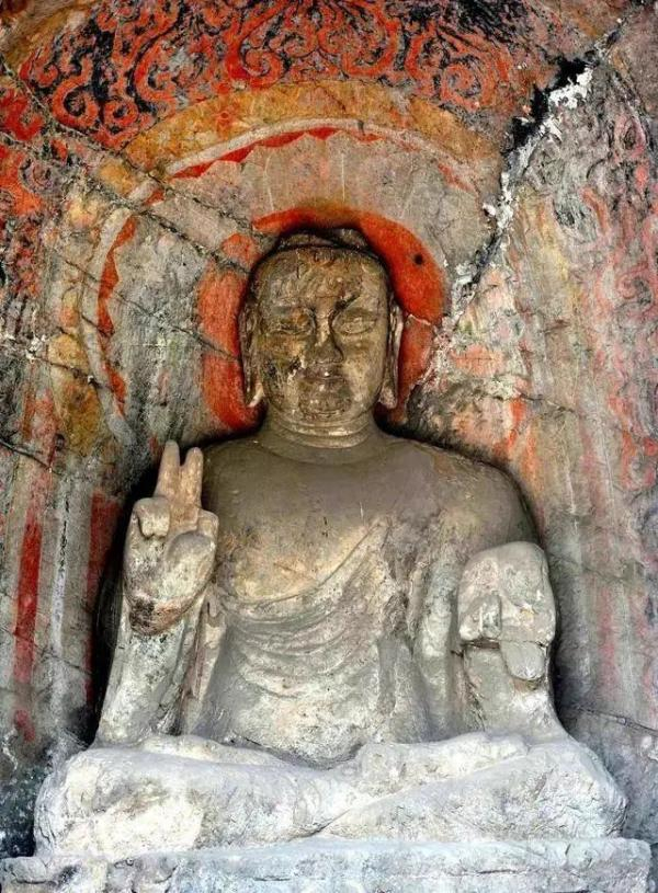 但这个姿势后来被网友发现,和洛阳龙门石窟宾阳北洞正壁主尊佛像很像,看下图是不是很可爱?