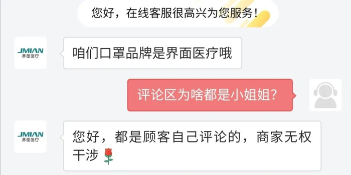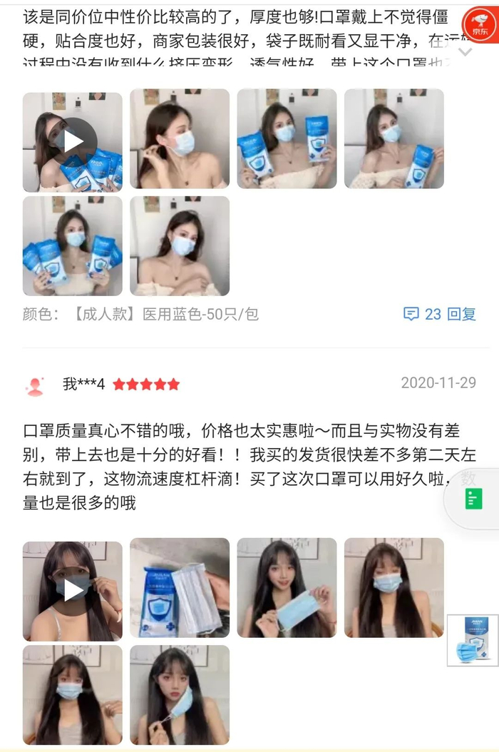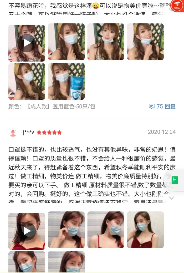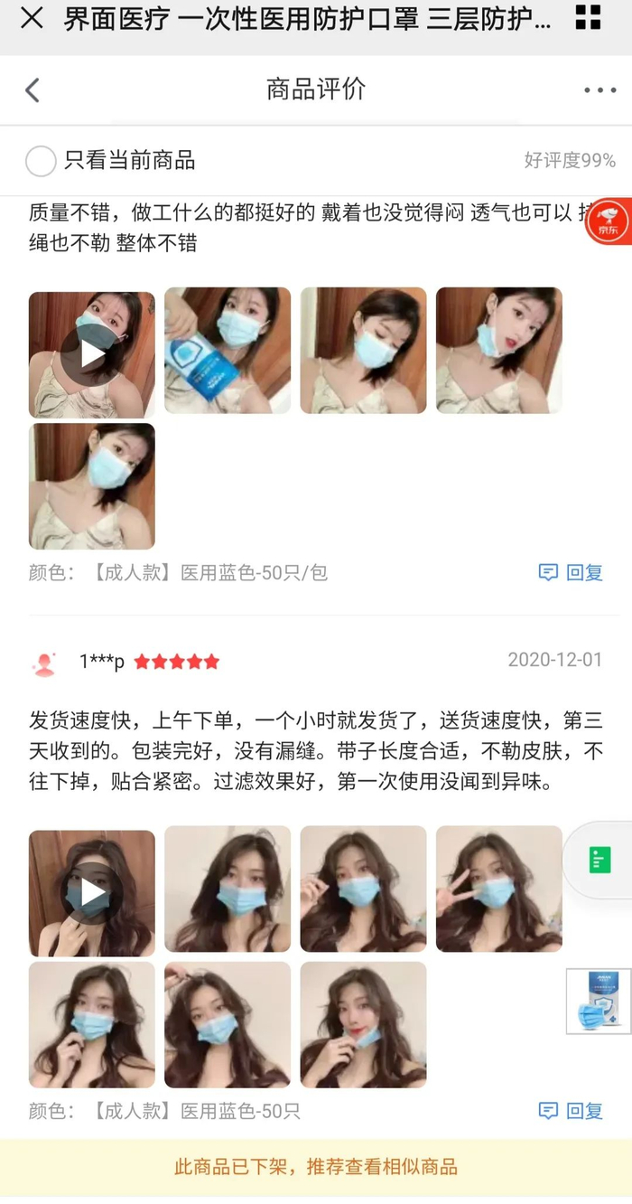 近期国内零星出现的新冠疫情,又让人们想起买口罩。就在昨天(12月9日),京东商城上的“界面医疗旗舰店”引发广泛关注——并不是因为9.9元/50片的超低价格,而是因为评论区里清一色的美女晒图,甚至有“女顾客”多次晒图评价口罩质量好。