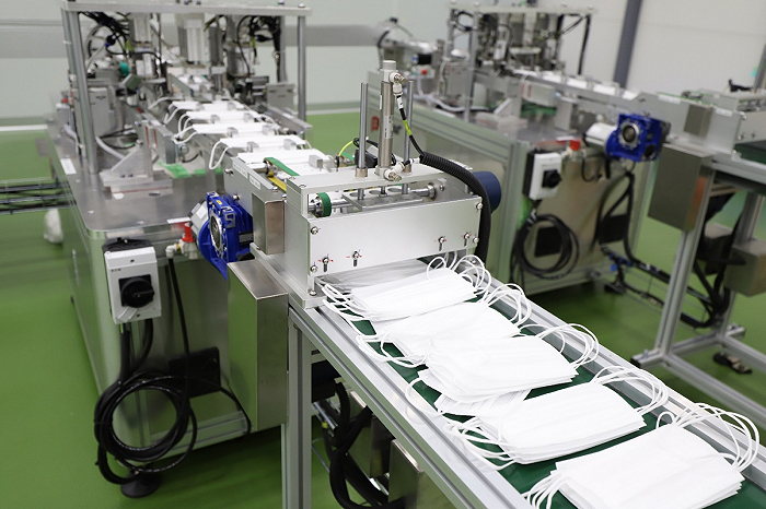 日本滋贺工厂生产无纺布口罩(Photo by Yuri Hasegawa)