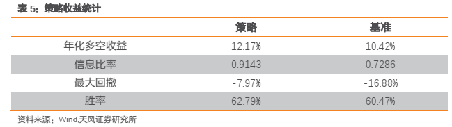 3、根据上文逻辑,当宏观维度趋势上行时,判断PB因子强势,做多低PB,做空高PB;当宏观维度趋势下行,相对强弱趋势也下行时,判断PB因子失效,做空低PB,做多高PB;当宏观维度趋势下行,而相对强弱趋势却上行时,判断PB因子弱势,但仍然贡献正向超额,做多低PB,做空高PB。