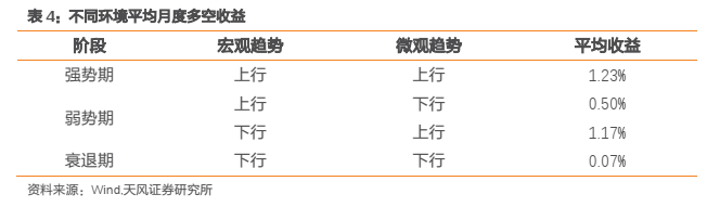 从根据宏观趋势与微观趋势的不同,我们将价值因子所处阶段区分为了强势期、弱势期与衰退期,从平均多空收益来看,在强势期价值因子表现最为出色,衰退期表现较差,弱势期介于两者之间,印证了我们之前关于宏观趋势与微观趋势对价值因子溢价影响的结论。
