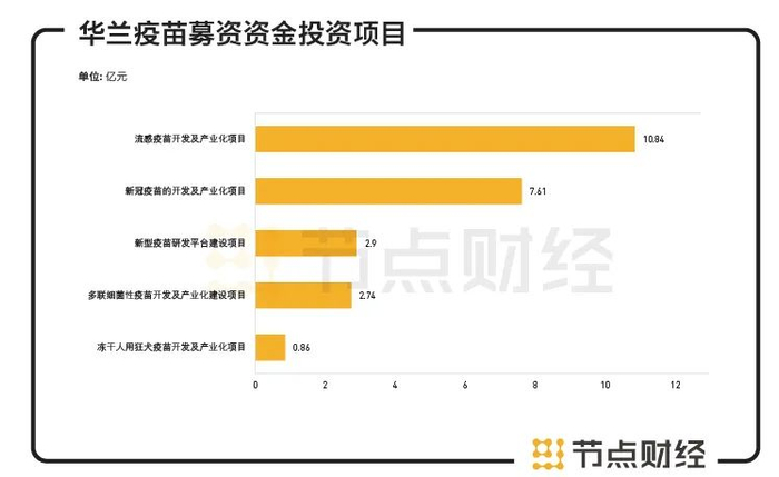 虽然研发迟迟没进展,但华兰疫苗此次的招股书,还特意拟募资7.61亿元用于新冠疫苗的开发及产业化。除了新冠疫苗,华兰疫苗还会募资用于流感疫苗开发及产业化项目(10.84亿元)、冻干人用狂犬疫苗开发及产业化项目(0.86亿元)、多联细菌性疫苗开发及产业化建设项目(2.74亿元)、新型疫苗研发平台建设项目(2.90亿元),共计24.95亿元。