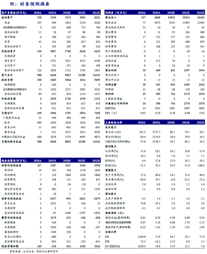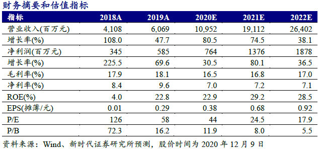 预计公司2020-2022年归母净利润分别为7.64/13.76/18.78亿元,同比分别增长30.6%/80.1%/36.5%,对应2020-2022年EPS分别为0.38/0.68/0.92元。给予公司2021年PE估值30~35倍,对应股价20.4~23.8元,首次覆盖给予“推荐”评级。
