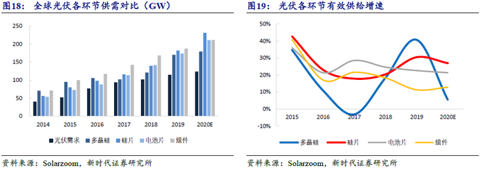 组件、硅片扩产进程快于电池片,电池片环节产能扩张出现缺口,盈利有望改善。预计2020年全球光伏装机125GW,全年多晶硅、硅片、电池片、组件环节有效供给能力分别为179/231/211/212GW。硅片和组件端与电池片的供给端出现缺口,目前统计组件和硅片扩产进程快于电池片,从供给角度来讲,预计2021年电池片环节盈利水平有望改善。