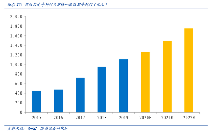 从一致预期来看,中证细分食品饮料产业主题指数未来仍将保持净利润的高速增长。按照万得一致预期净利润来看,指数2020年、2021年、2022年净利润增长率将分别为:13.29%、19.29%、17.24%,指数成长性可期。