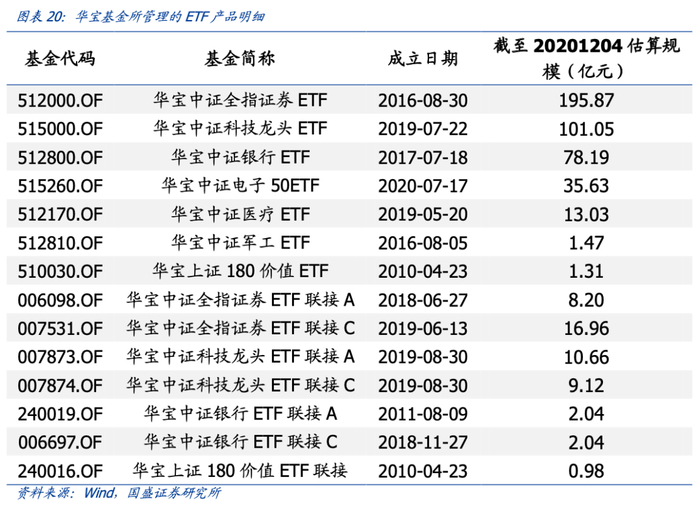 基金的管理人华宝基金管理有限公司具有丰富的ETF产品管理经验。截至2020年12月04日,其共管理ETF基金7只(同时管理4只联接基金),ETF产品总规模达到426.55亿元。最早成立的ETF基金为华宝上证180价值ETF,其成立于2010年。同时华宝基金在行业ETF上都有较为完善的布局,其拥有证券、科技龙头、银行、电子50、医疗、军工等ETF。