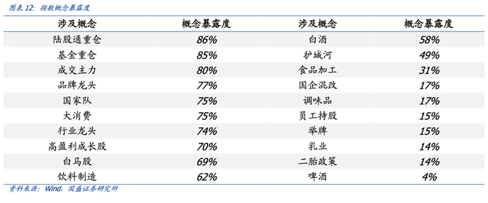 从指数涉及概念来看,指数主要暴露于机构重仓、品牌龙头、高盈利成长股等概念。同时又覆盖国企混改、员工持股、举牌、二胎政策等非行业概念。