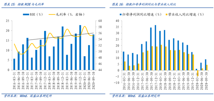 当前经济进入复苏阶段,可选板块步入顺周期,必选板块亦有看点。为了应对疫情对经济发展带来的影响,2020年3月开始,全球货币供应量显著提升,具体到中国市场来看, M2同比增速保持在10%以上。随着疫情影响的逐渐消退,经济进入复苏阶段,前三季度GDP(不变价)同比增速分别为-6.8%、+3.2%和4.9%,展望未来,经济向好趋势不变,与经济相关的可选板块步入顺周期。此外,随着经济的复苏,上游部分原材料进入涨价周期,食品饮料龙头企业由于其话语权较强,亦会出现提价机遇,带来业绩弹性。
