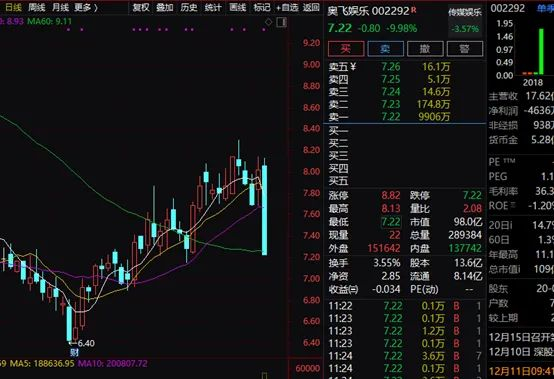 奥飞娱乐在开盘后不久就直线跳水,随后直奔跌停,在此之前,股价表现非常坚挺。