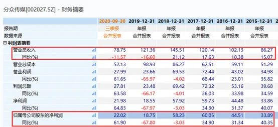 不过,从2019年开始,公司营收开始下滑,2019年公司营收121.36亿元,同比下降16.60%,归母净利润18.75亿元,同比大降67.80%。今年前三季度,公司营收78.75亿元,同比再度下降11.57%,归母净利润22.02亿元,同比增长61.90%。