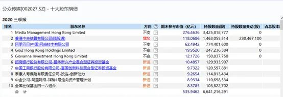 分众传媒的前十大股东中,有多位重要股东,包括阿里巴巴、全国社保基金等。
