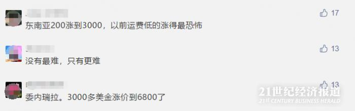 涨价仍在持续,以至于部分货代不太敢报价。“以前海运费一个月内都不会有太大波动,而如今一天一个价,今天报的价,明天就变了,甚至九点报的价,十点就又不同了。”上海一位货代告诉21世纪经济报道。